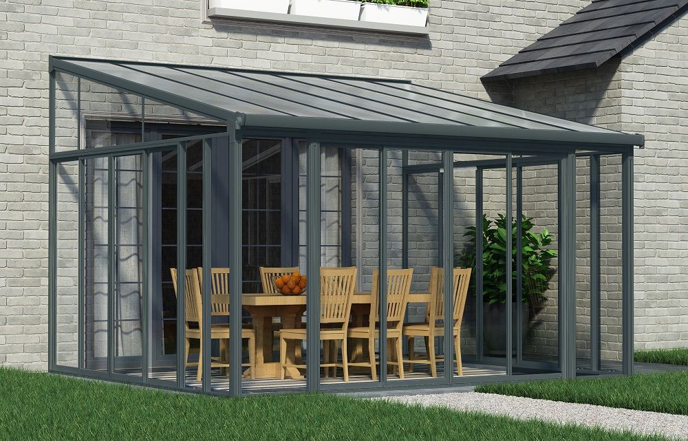 Ogrody zimowe z drzwiami przesuwnymi Veranda Sanremo Palram - Canopia 4 x 4,25 m szare