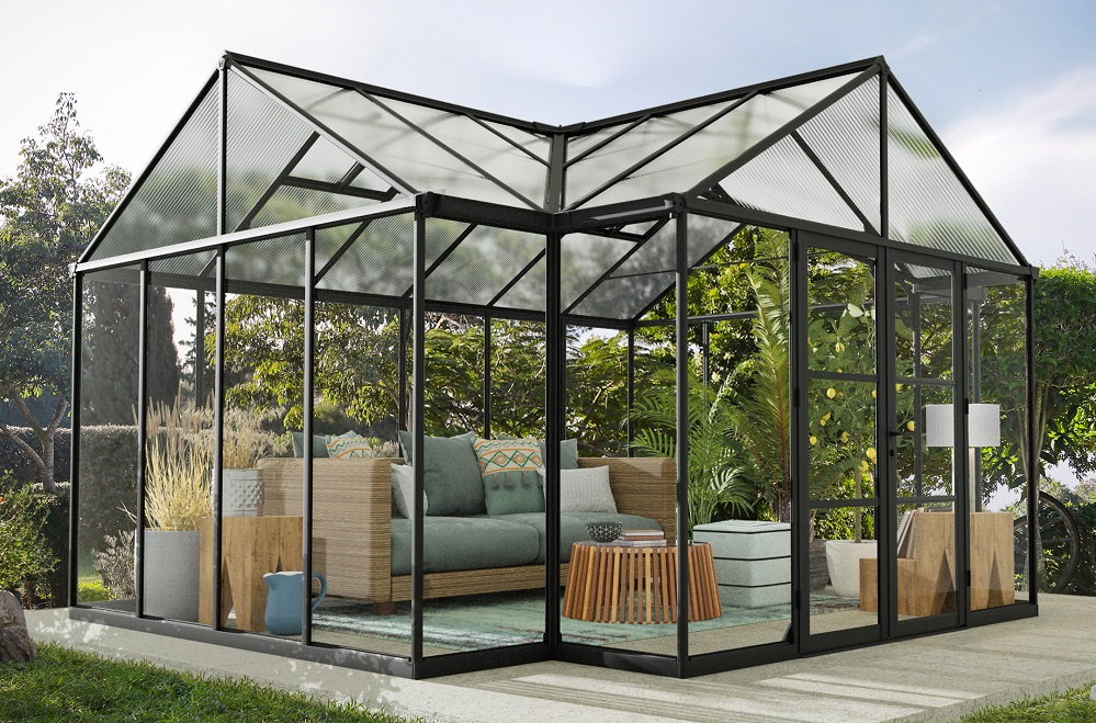 fot. szklane ogrody zimowe - Oranżeria ogrodowa Victory Grand czarna Palram - Canopia
